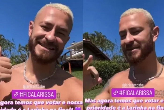 "Não tenho nada a ver com isso, não fui eu que escolhi e não fiz parte desta decisão. Porém, se eu estivesse lá dentro da casa e tivesse que escolher entre a Bruna e a Lari, obviamente que ia pedir para votar na Bruna e ela super entenderia isso. Então bora votar na Bruna. Me dói muito falar isso, mas certeza que a Brubru vai entender quando ela estiver aqui fora."