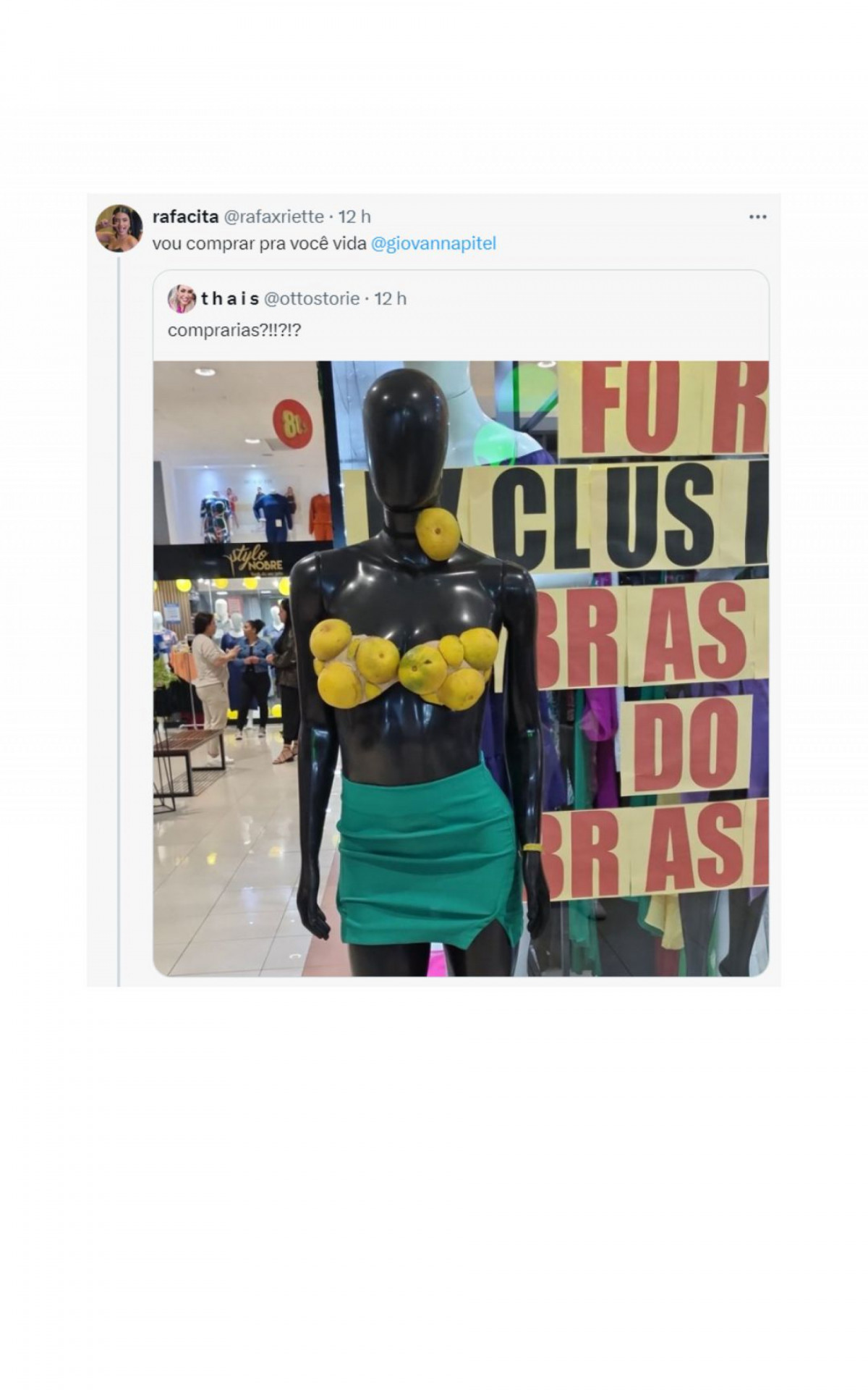 A ex-'BBB' foi marcada na foto da vitrine de uma loja que vendia um top de cascas de laranja, idêntico ao que Beatriz produziu