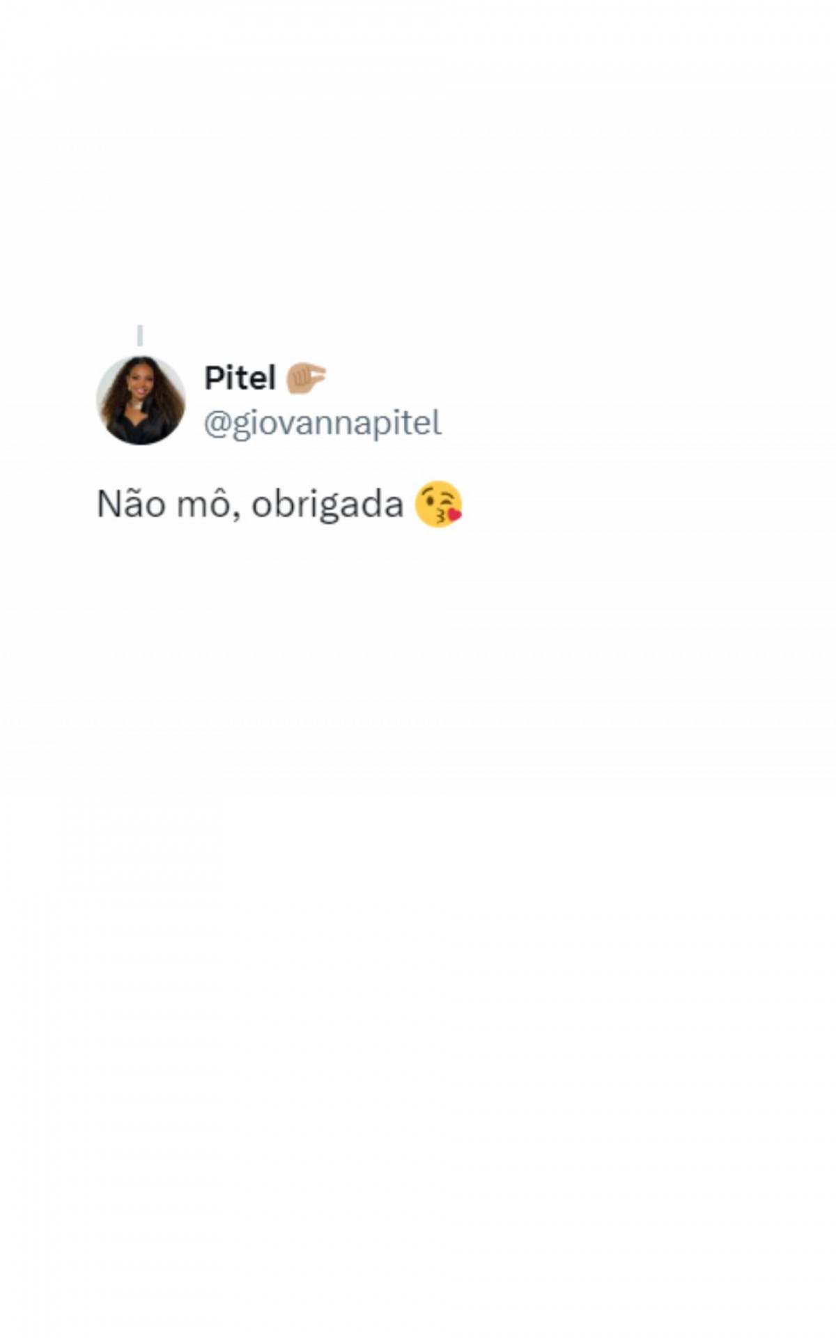 "Não, mô. Obrigada", respondeu a ex-'BBB' à publicação. Nos comentários, os fãs de Pitel se divertiram com a resposta dela