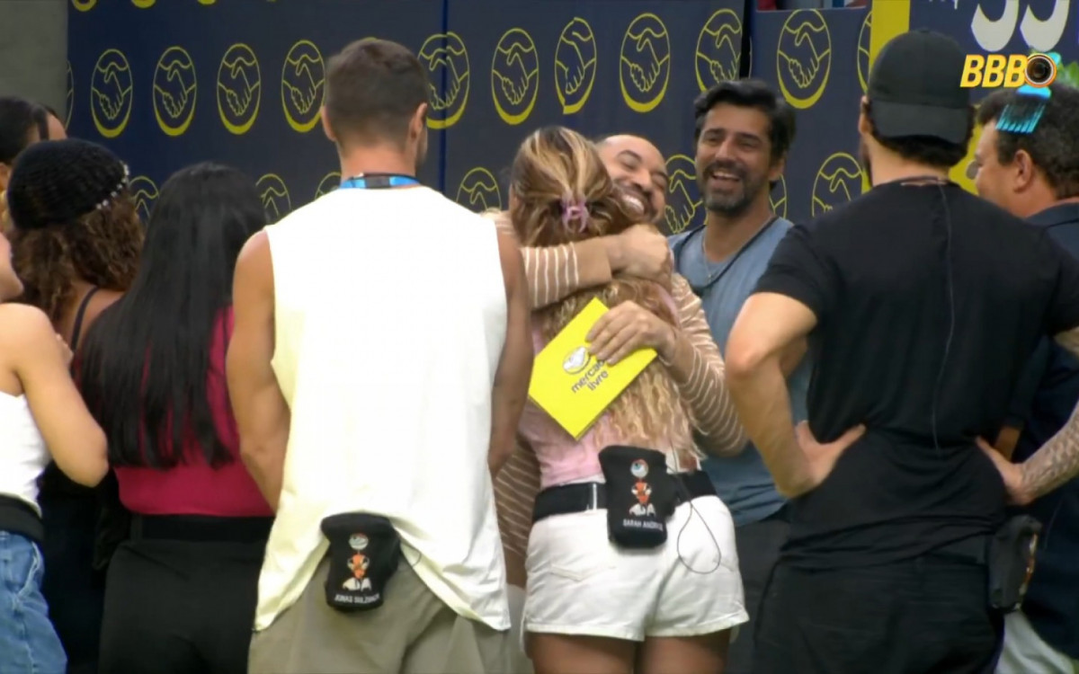 Assim que entrou na área externa, Gil cumprimentou os confinados, entre eles Solange, Edilson Capetinha e Jonas Sulzbach. Pouco depois, reconheceu Sarah. “Olha a Sarah!”, disse ele, antes de abraçar a sister. A reação da influenciadora chamou atenção, com lágrimas e visível emoção.