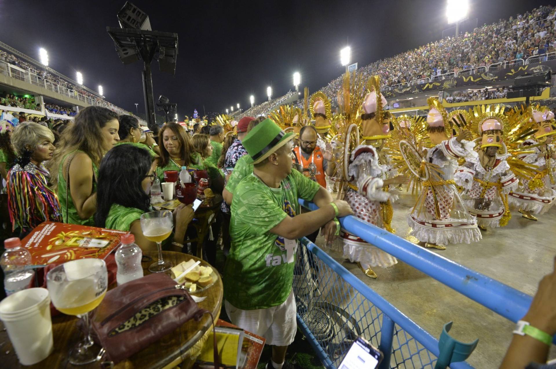 Com o tema "Favela", o espaço conta com dois andares, cerca de 1,4 mil metros quadrados e tem visão privilegiada para a avenida. Até o quinto dia de festa, quando ocorre o tradicional desfile das campeãs, 3,5 mil pessoas passarão por lá.