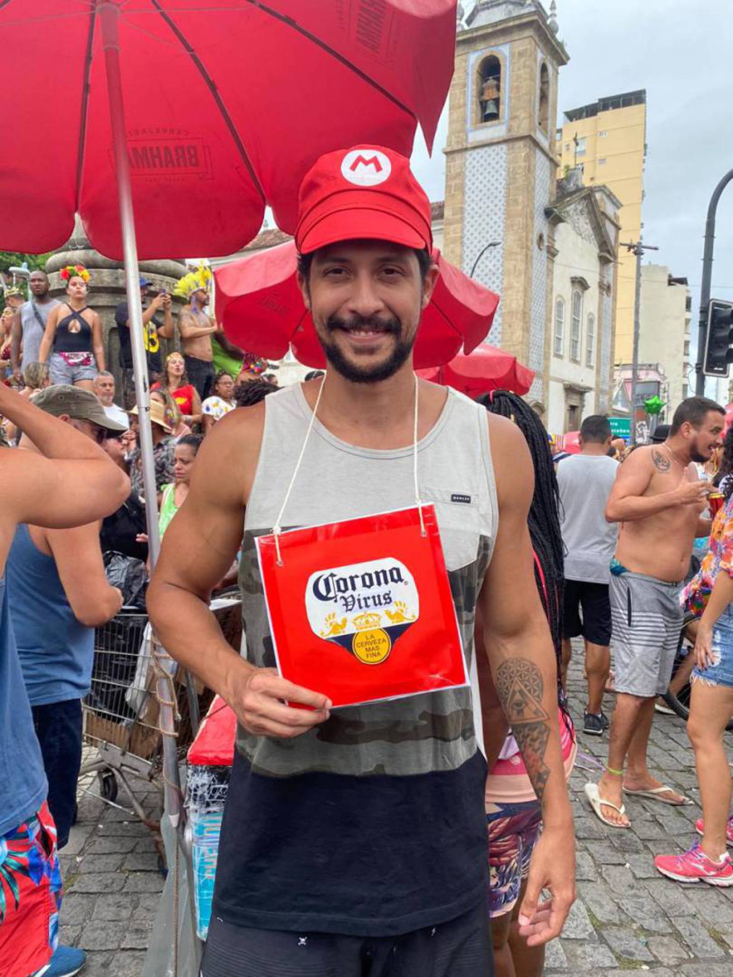 Felipe Reis, de 38 anos, também resolveu levar a esposa e o filho ao bloco. "A gente vem há dez anos e dessa vez resolvemos trazer ele porque é um bloco bem família. Eu amo o Quizomba", explicou o comerciante, que estava vestido de homem das cavernas. Aliás, dentre as fantasias, as que mais se destacaram foram as de coronavírus e do Coringa, vilão da DC.
