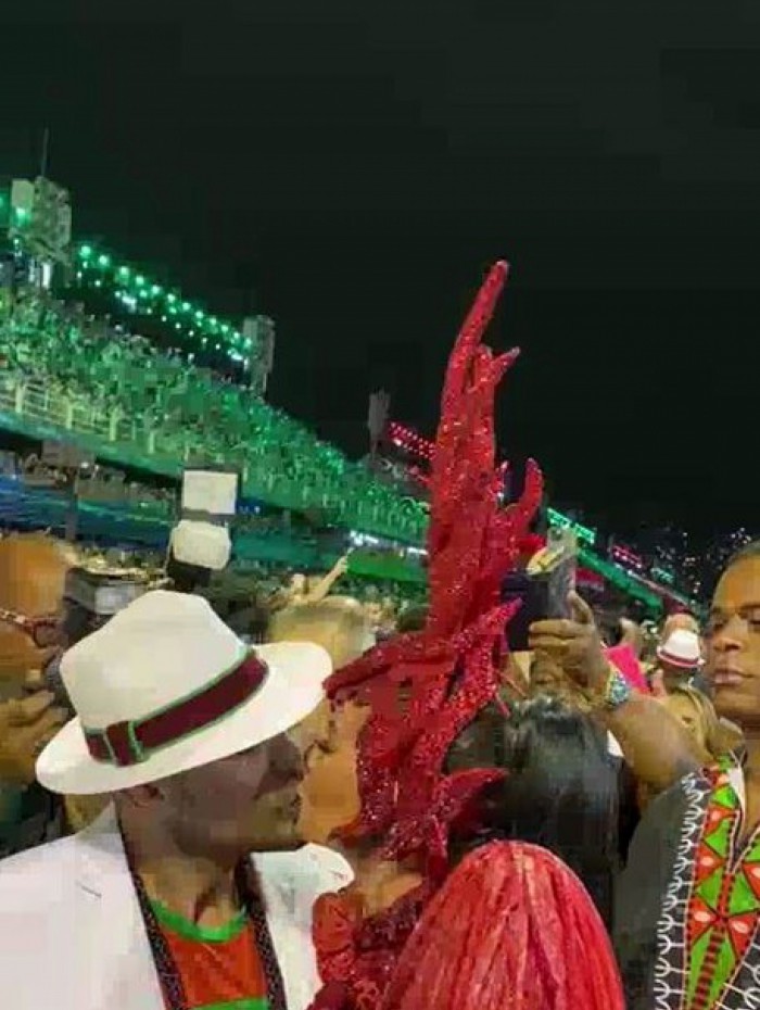 Paolla Oliveira e Diogo Nogueira dão selinho no 'esquenta' do desfile da Grande Rio. #ODia