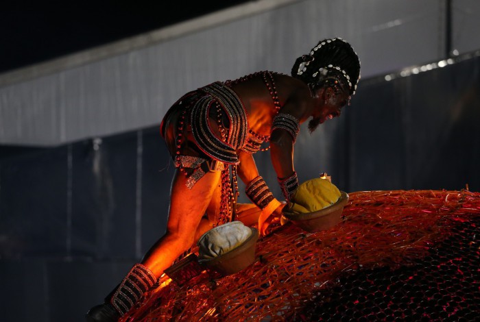 Rainha de Bateria da escola, a atriz Paolla Oliveira também chamou a atenção no desfile da Grande Rio. Na Marquês de Sapucaí, a artista representou a Pombagira, também considerada uma mensageira do mundo espiritual. Ela desfilou ao lado do namorado, o cantor Diogo Nogueira, conhecido por ser torcedor da Portela.