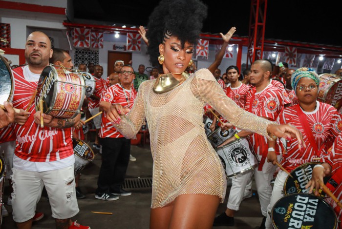 Rio - Erika Januza caiu no samba durante a feijoada na quadra da Unidos do Viradouro, neste sábado. A atriz e rainha de bateria se esbaldou na festa, além de ostentar simpatia ao posar com fãs e membros da Furacão Vermelho e Branco.