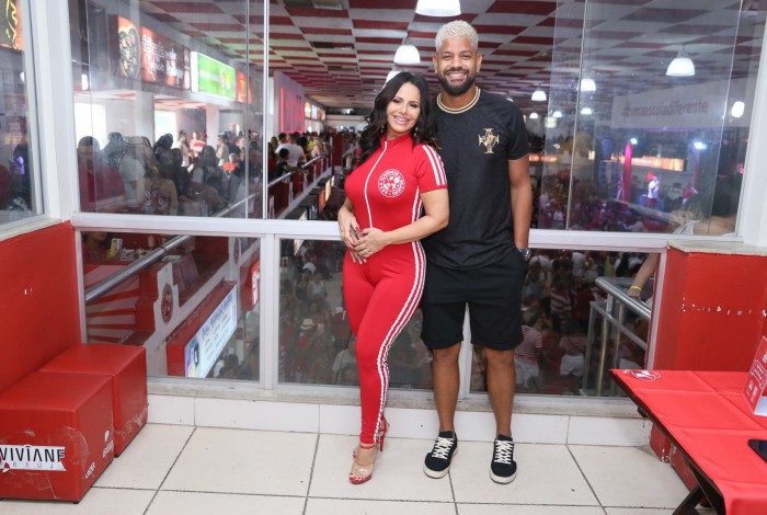 Rio - Dois meses após dar à luz seu primeiro filho, Joaquim, Viviane Araújo, de 47 anos, curtiu a feijoada do Salgueiro, na quadra da agremiação, na Zona Norte do Rio, na noite deste domingo. A rainha de bateria da vermelho e branco mostrou sua boa forma com um macacão bem justinho. Vivi estava acompanhada pelo marido, Guilherme Militão, com quem trocou muitos beijos e carinhos.