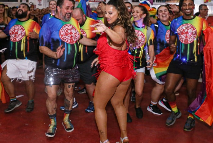 Rio - Nos preparativos para o Carnaval, Viviane Araujo, de 47 anos, mostrou que tem samba no pé durante o ensaio na quadra do Salgueiro, escola em que é Rainha de Bateria. A atriz optou por um look vermelho, curtinho e repleto de franjas, para participar do evento, que ocorreu na noite desta quinta-feira.
