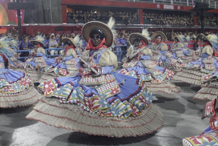 Rio - Vestidas de mulheres de cangaço, as baianas da Imperatriz Leopoldinense distribuíram irreverência durante o desfile da escola no Sambódromo da Marquês de Sapucaí A baiana Fátima classificou a roupa como linda. Já a baiana Tânia disse que ficou muito feliz de cangaceira.