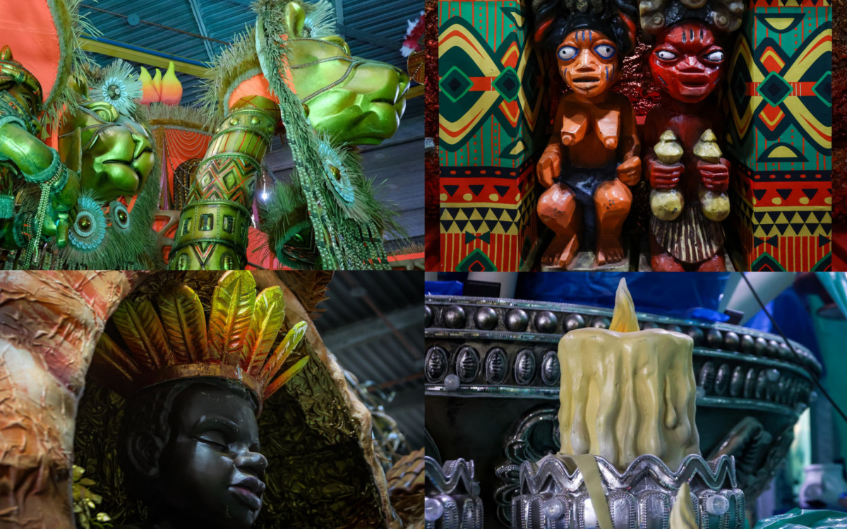 Detalhes da alegoria dedicada a Xangô da Imperatriz Leopoldinense para o Carnaval 2025Renan Areias/Agência O Dia