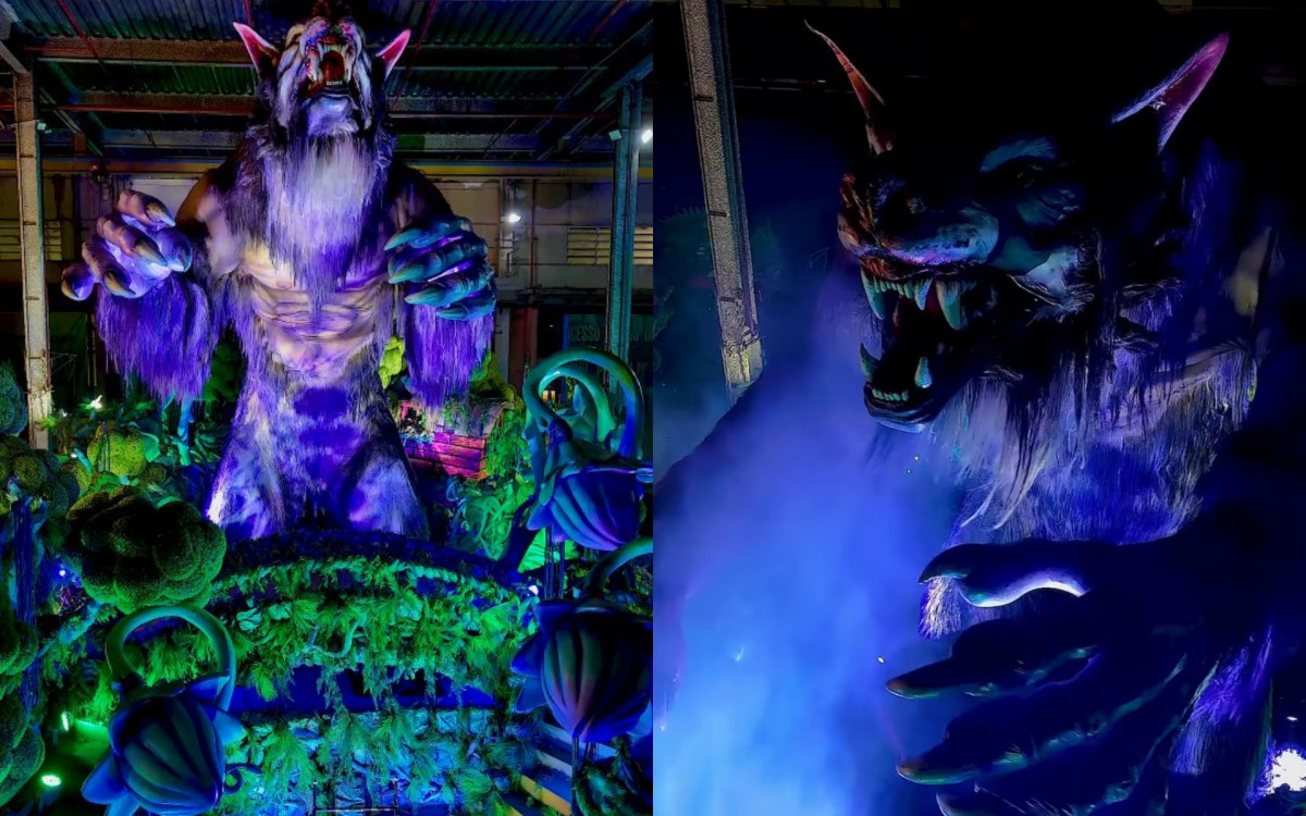 No centro da alegoria, a escola aposta em uma figura de grandes proporções: o lobisomem, personagem citado de forma recorrente no refrão da música e símbolo do universo criado por Ney Matogrosso desde os anos 1970. “No centro de tudo, de forma agigantada (e esmeradamente trabalhada) exibo um desejo antigo, gestado no esmero e na vontade de fazer algo onde acabamento, movimento e gigantismo pudessem andar de mãos dadas. Aqui, pra vocês, o spoiller é o lobisomem (criatura mencionada de forma alegre e repetitiva no refrão dançante que impulsiona o imenso sucesso da obra que acompanha o imaginário do Ney desde 1973) e xodó dos que tomam parte do trabalho diário pra pôr um carnaval de qualidade na rua!”