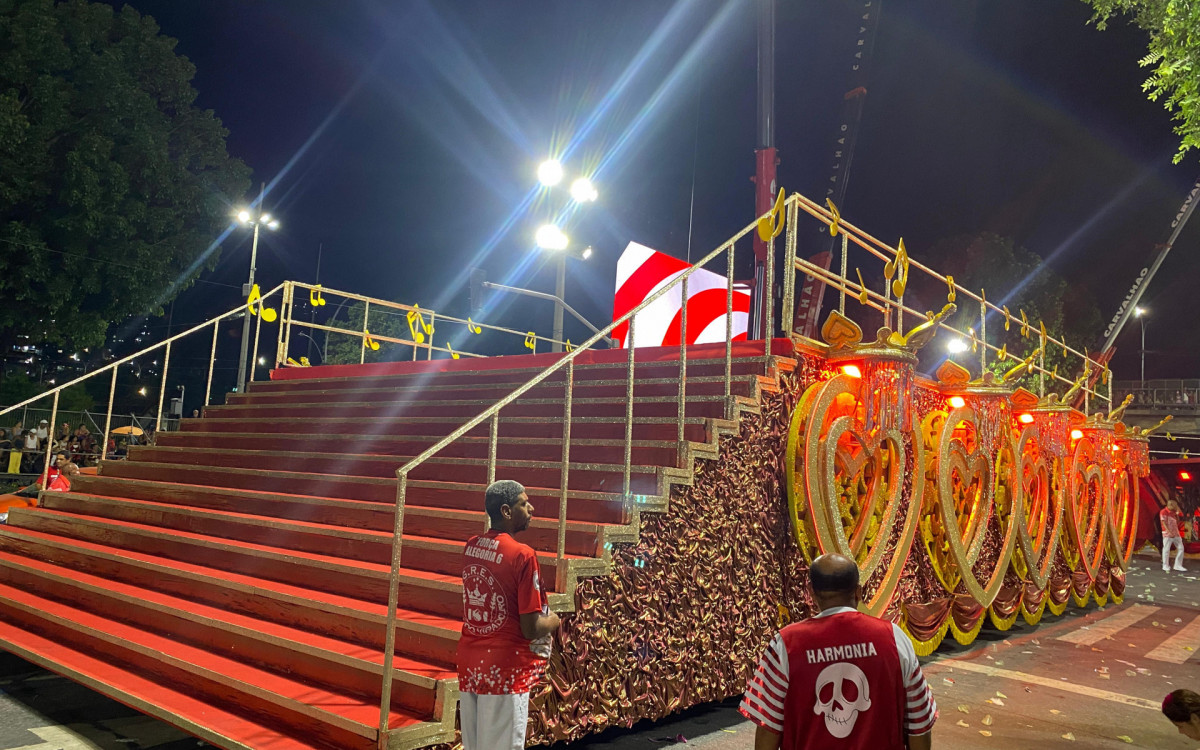 Carro alegórico da Viradouro onde a bateria vai subir durante o desfile em homenagem a Mestre Ciça.