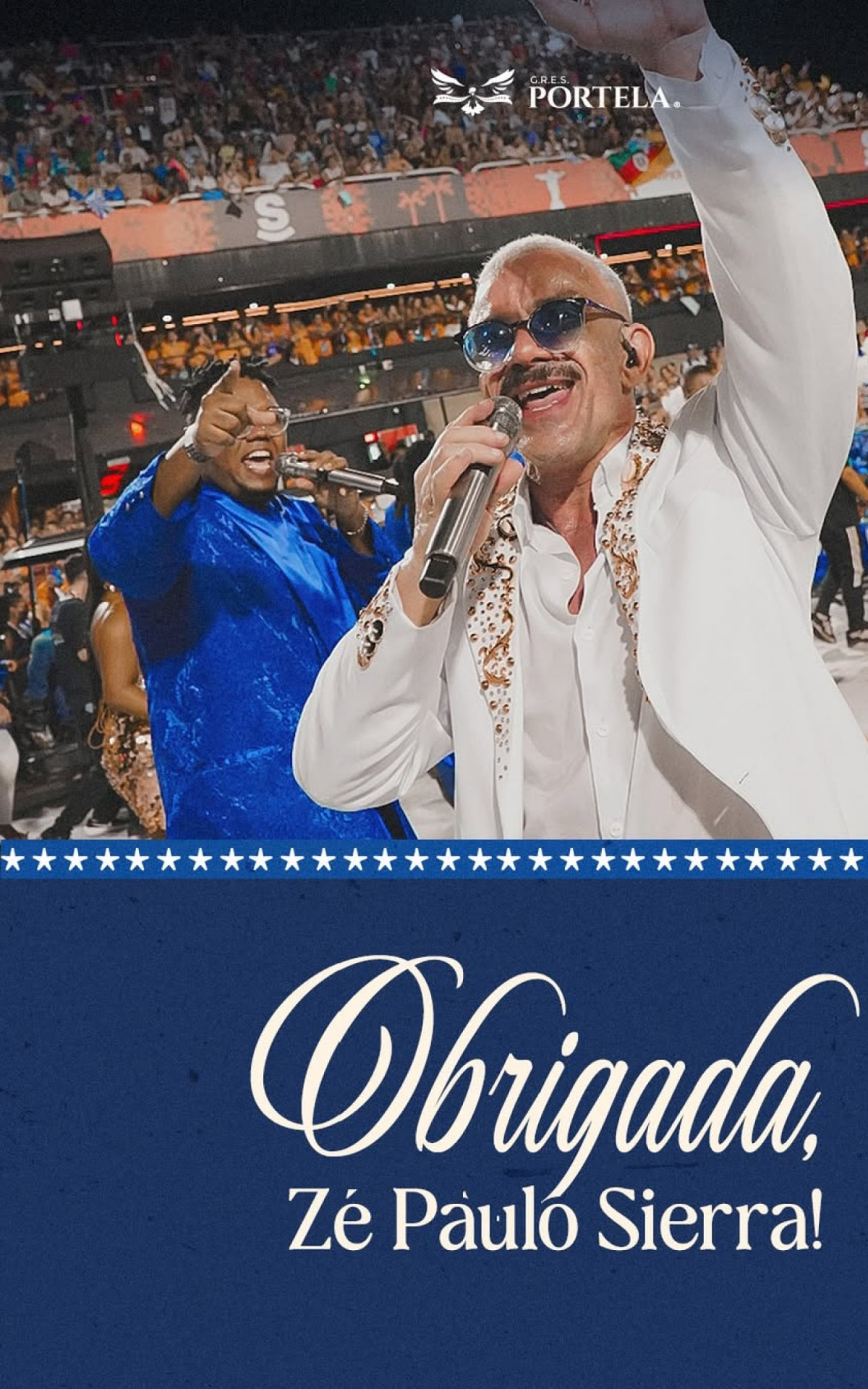 "A Portela informa que o intérprete Zé Paulo Sierra não faz mais parte do nosso time. Zepa chegou até nós em um momento de muita dor, quando nos despedíamos de Gilsinho. Com sensibilidade, respeito e amor ao pavilhão, ele nos ajudou a transformar saudade em canto e a seguir em frente. Somos gratos pela entrega, toda dedicação e pelo carinho com a nossa comunidade", anunciou a escola.