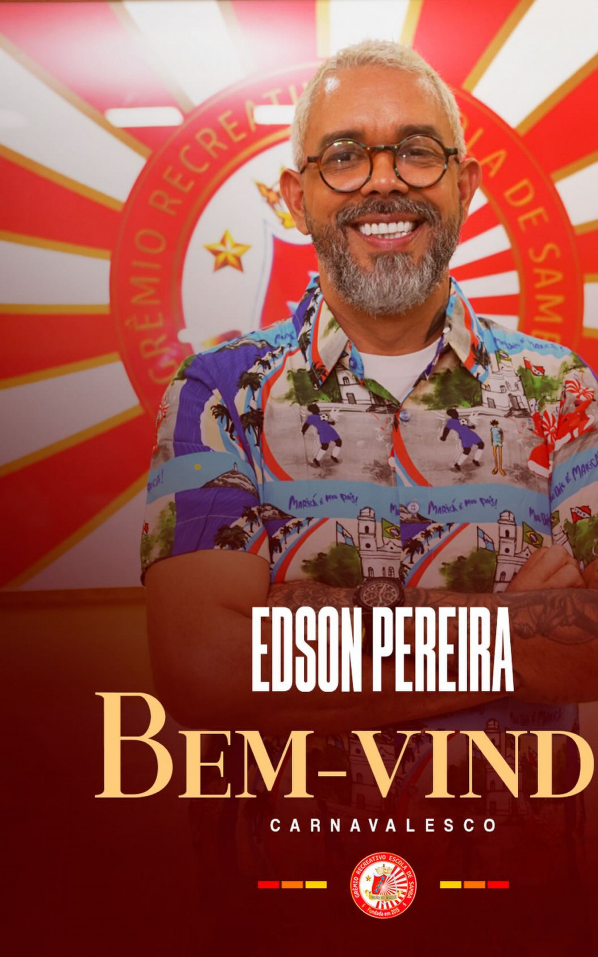"Hoje damos as boas-vindas ao nosso novo carnavalesco, Edson Pereira. Após dois anos na Unidos da Tijuca, ele chega para somar talento, experiência e novas ideias ao nosso projeto.