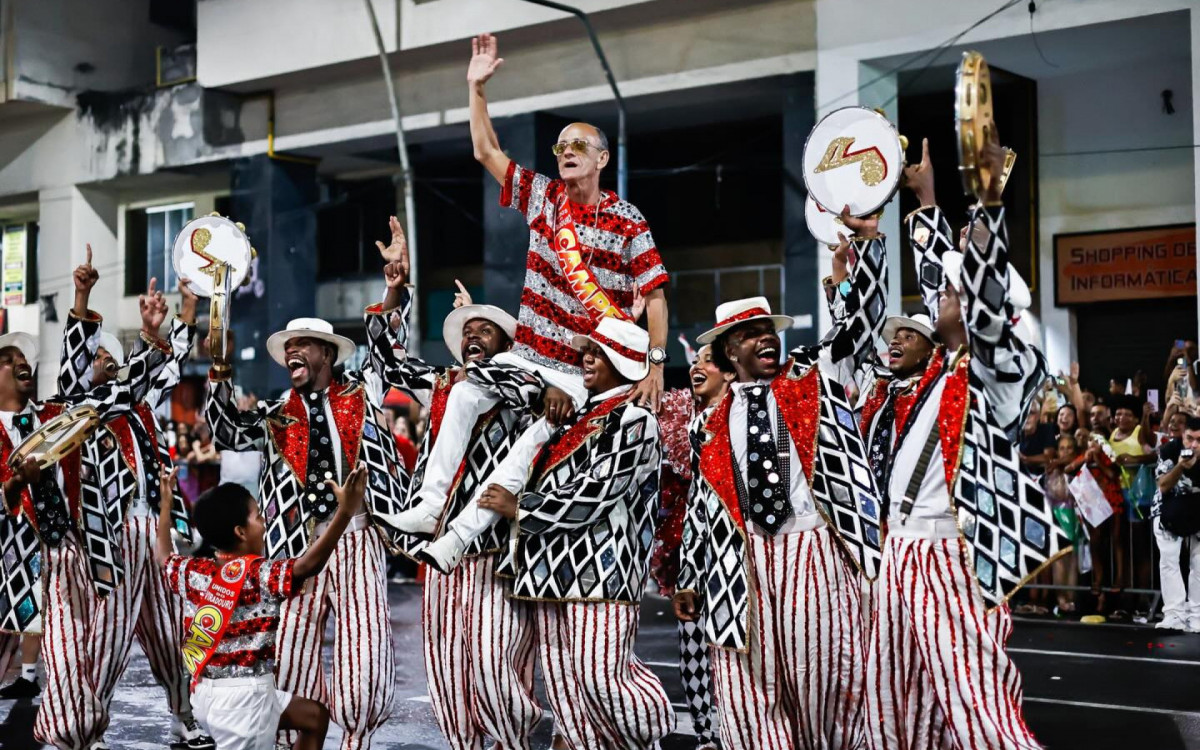 Rio - Grande campeã do Carnaval 2026, a Unidos do Viradouro promoveu o "desfile da vitória" e celebrou o título do Grupo Especial junto com a comunidade nas ruas do centro de Niterói, na noite deste sábado (7). Com os componentes fantasiados e adaptações de alegorias, o evento reuniu uma multidão na Avenida Amaral Peixoto e contou com a presença de Mestre Ciça, tema do enredo da Vermelho e Branco.