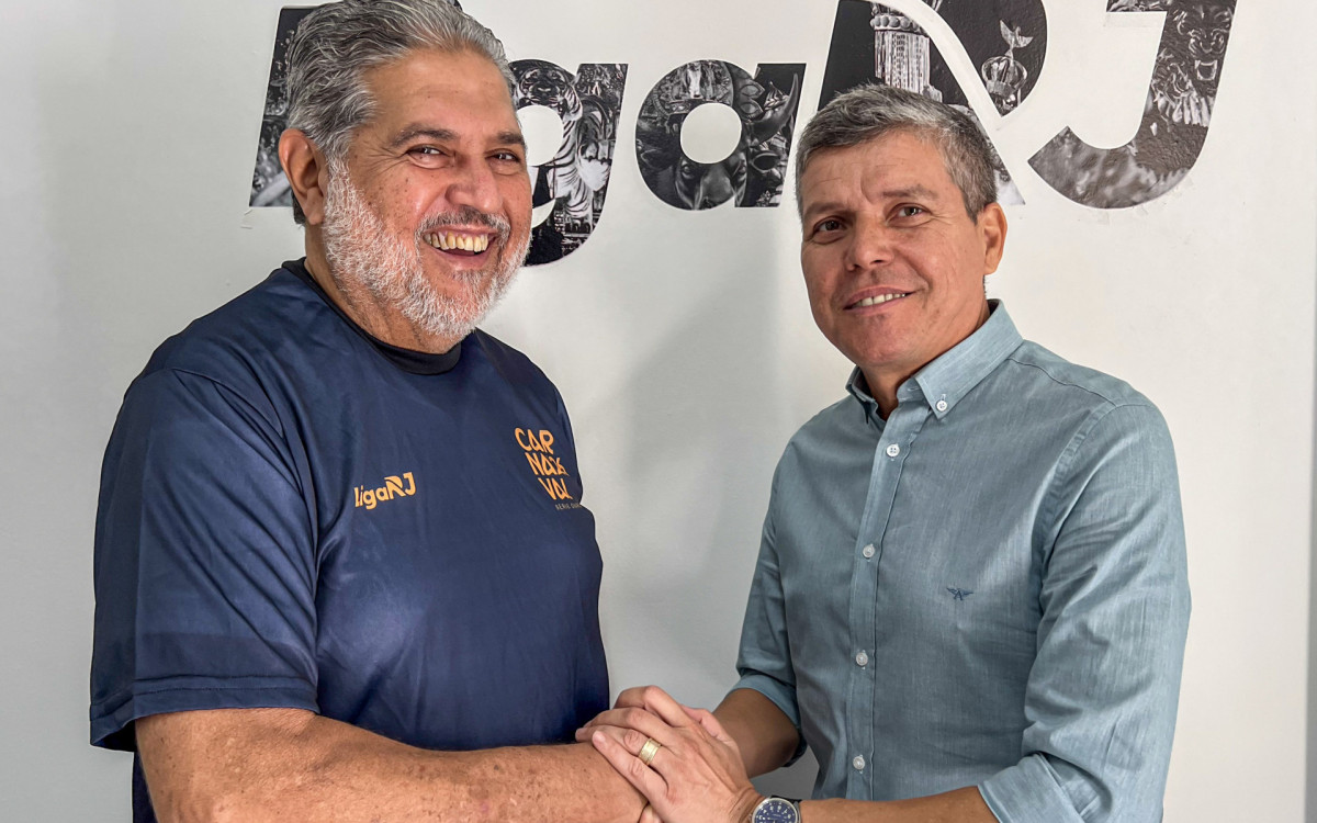 Moacyr Barreto, novo diretor de Carnaval da Liga RJ, posa com o presidente Deo PessoaDivulgação