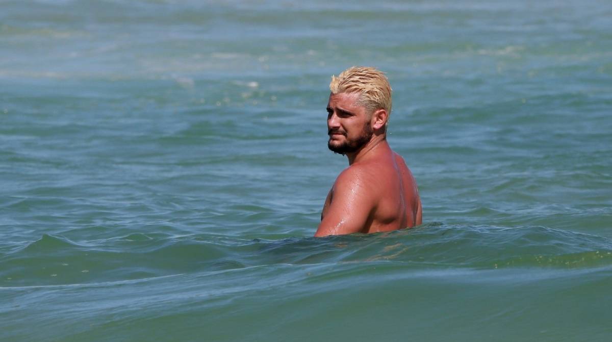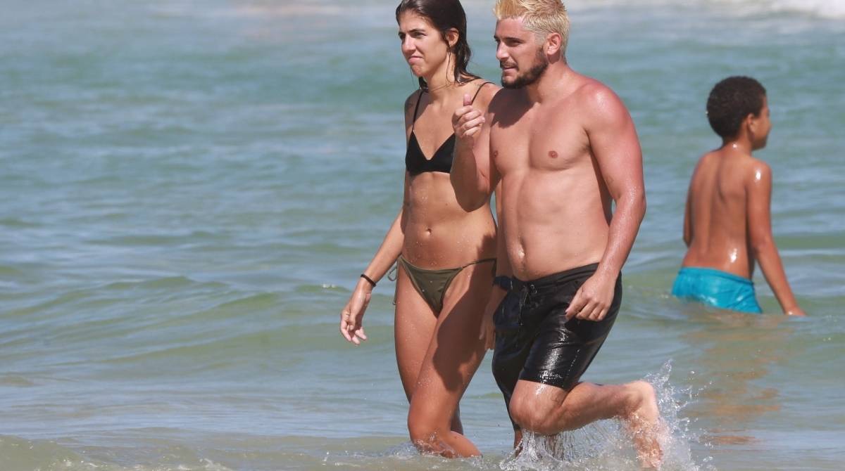Rio - Yanna Lavigne e Bruno Gissoni estiveram na Praia da Barra da Tijuca, na Zona Oeste do Rio, neste domingo. O casal estava acompanhado pela filha, Madalena, e por amigos. Bruno surpreendeu com seu novo visuak: o ator está com os cabelos descoloridos. O ator e Yanna trocaram muitos beijos e carinhos enquanto estiveram no local. Atualmente, Yanna Lavigne está no ar na novela "O Sétimo Guardião".