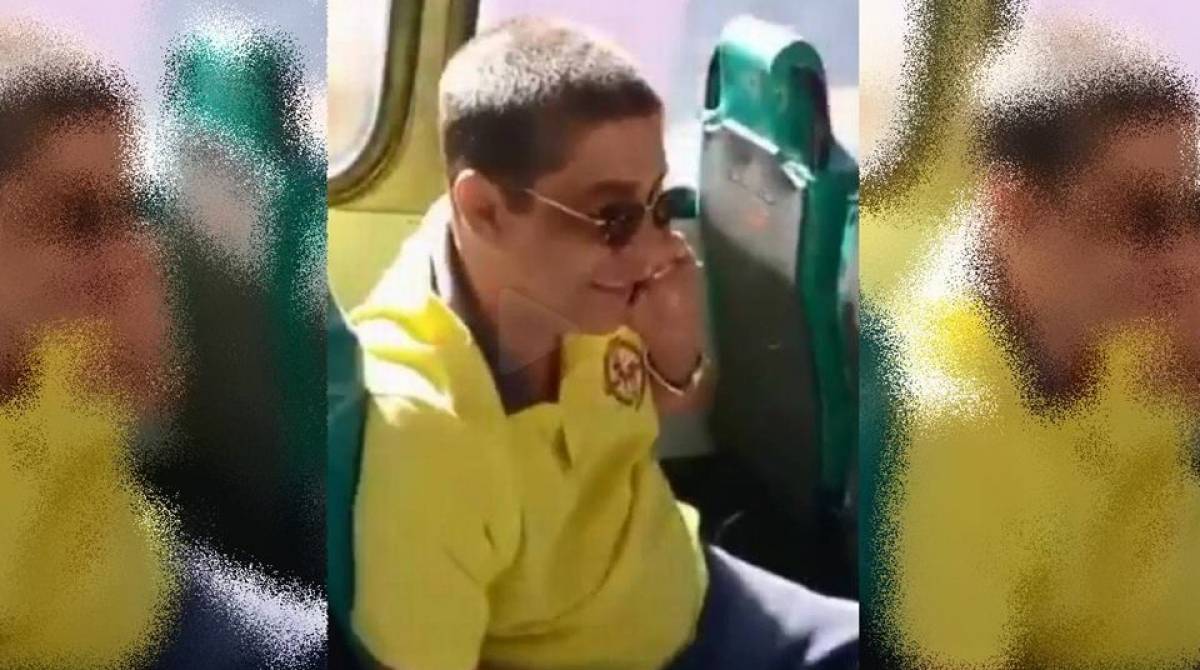 Sorridente e de óculos escuros, Zeca Pagodinho, que estava ao celular no momento em que o vídeo era gravado, cumprimenta outro passageiro e ainda interage com dois garotos que estavam no coletivo.