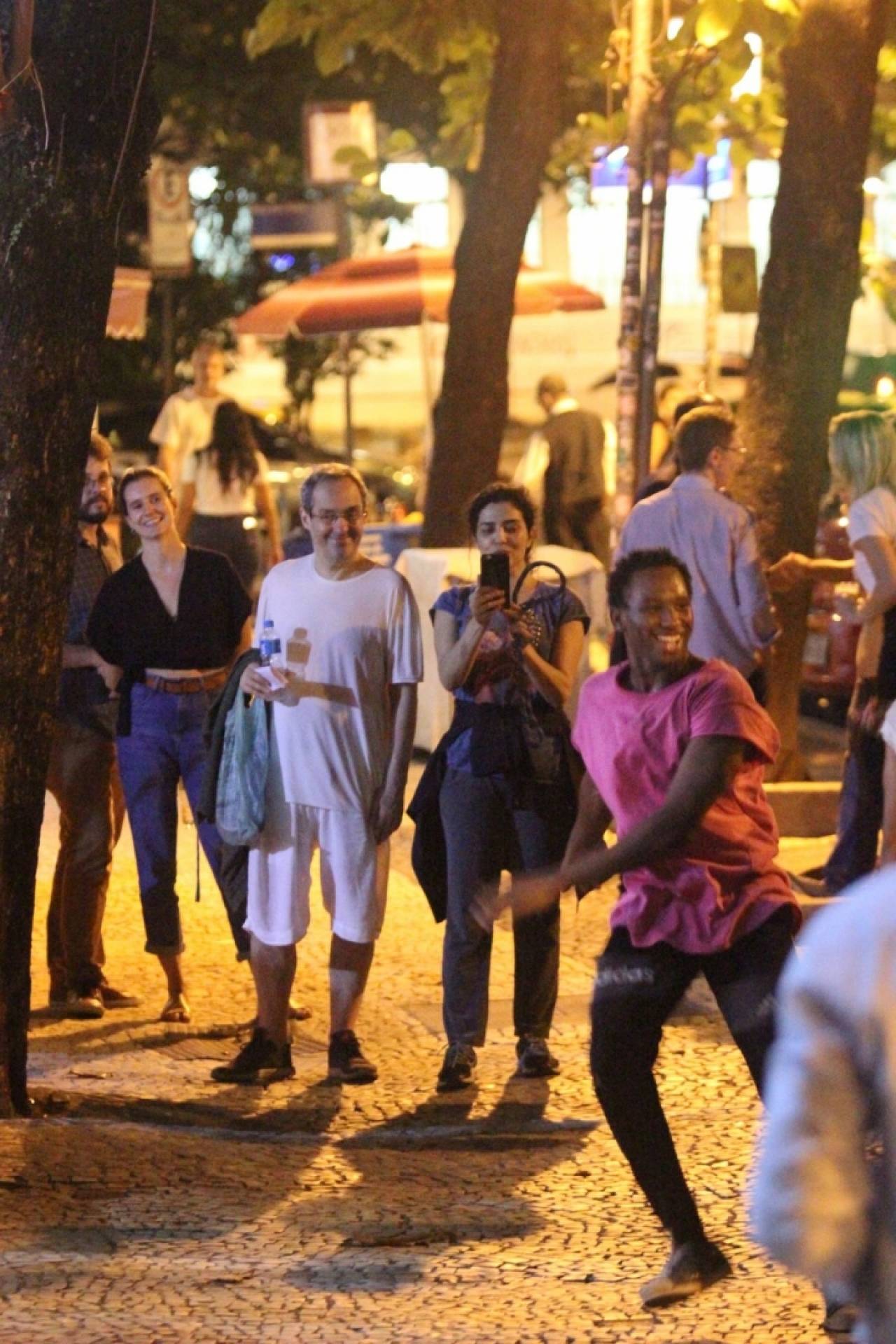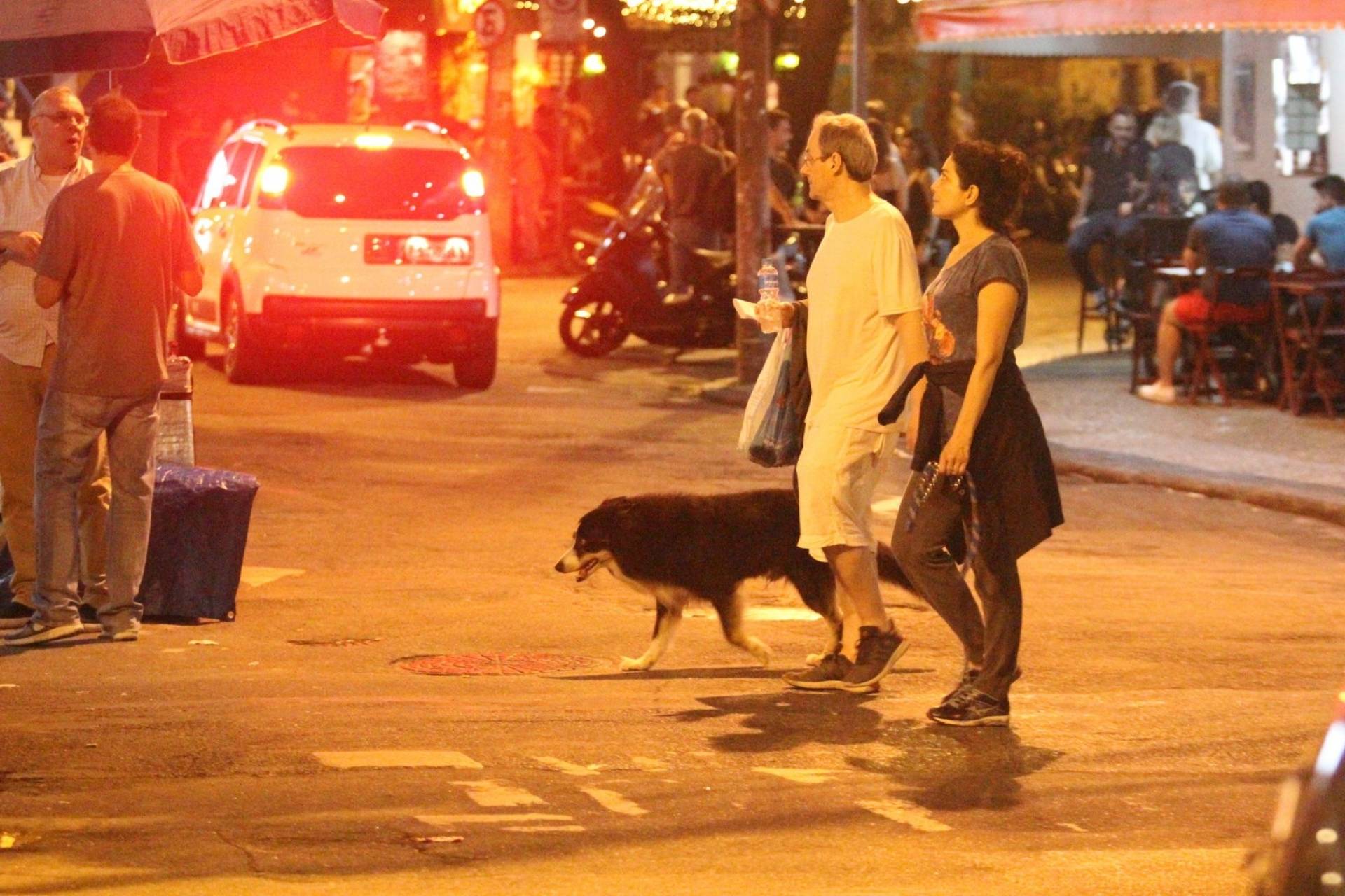 Rio - Letícia Sabatella e Daniel Dantas trocaram beijos apaixonados na madrugada deste sábado durante passeio pela Zona Sul do Rio. O casal aproveitou para levar um cachorro para passear e ainda acompanhou a apresentação de artistas na rua.