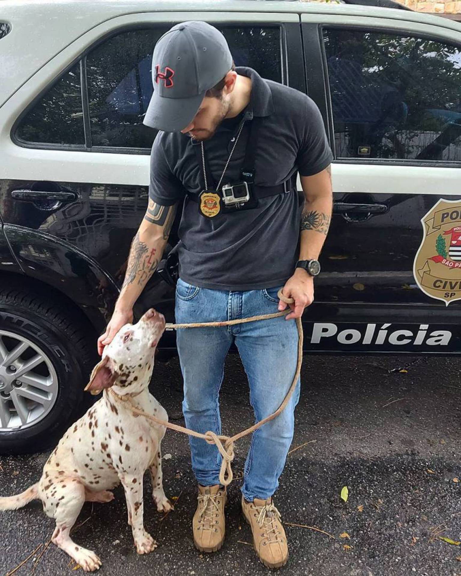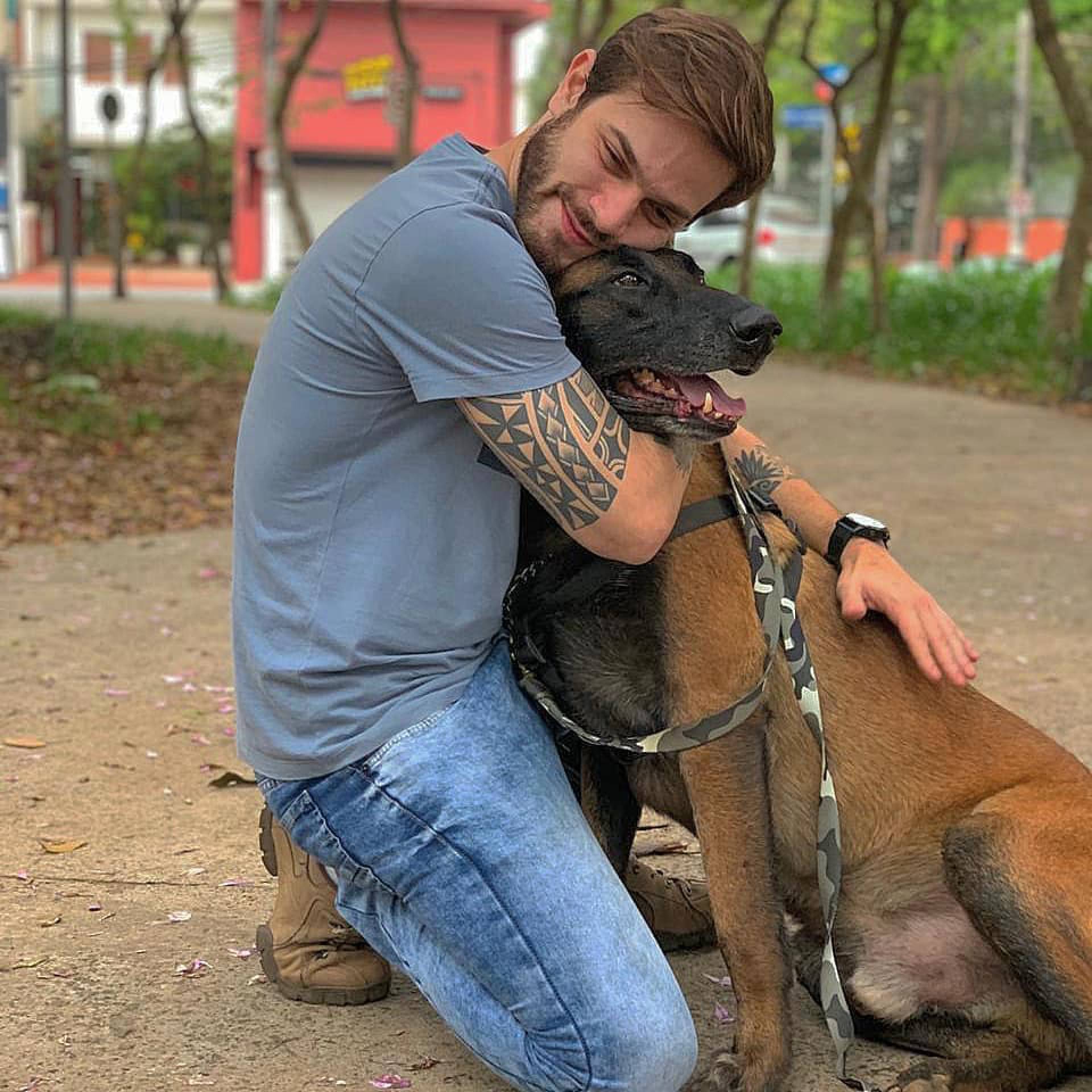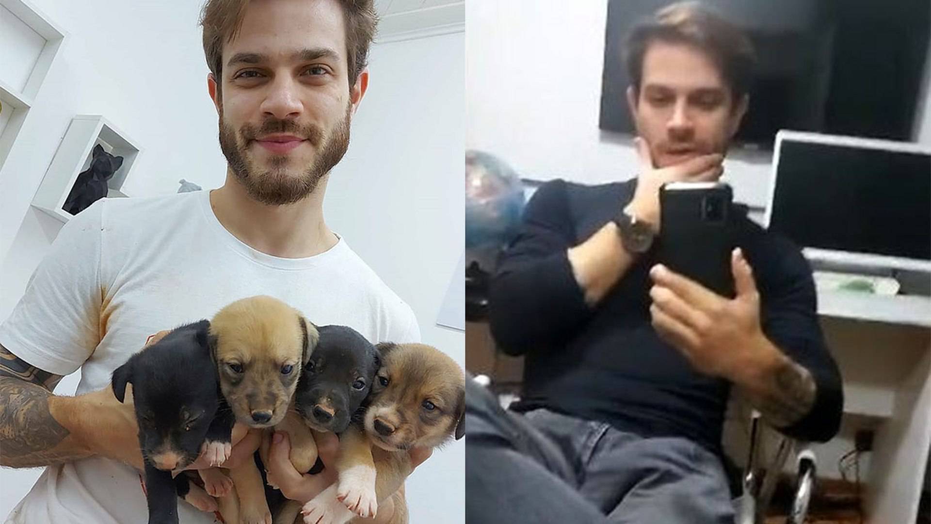 São Paulo - Felipe Becari é policial civil, mas é também conhecido pelo trabalho como protetor dos animais. Nas redes sociais, ele mobiliza mais de 800 mil seguidores contando histórias de resgates de animais em situações precárias e divulgando a adoção deles. O moço, que também chama atenção pela beleza, costuma gravar lives falando sobre seu trabalho e em uma delas um detalhe roubou a cena.