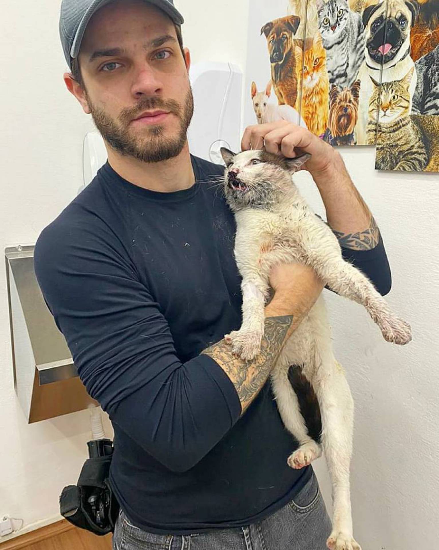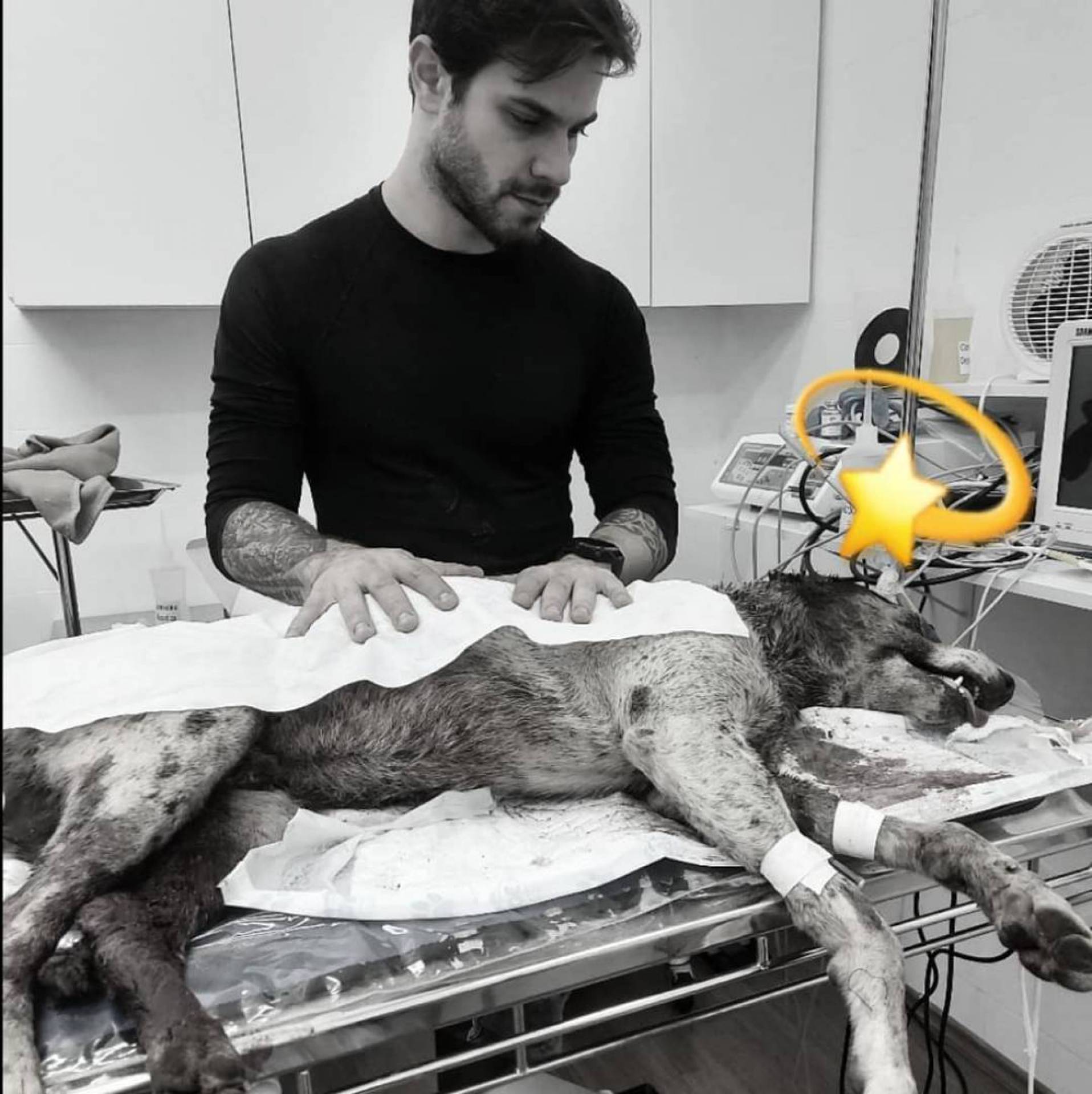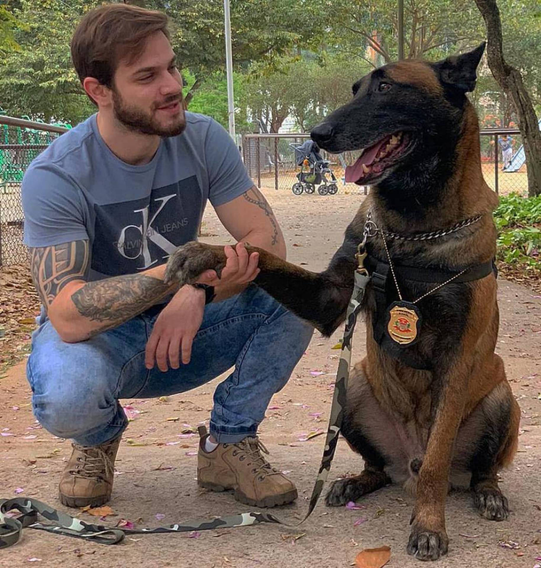 São Paulo - Felipe Becari é policial civil, mas é também conhecido pelo trabalho como protetor dos animais. Nas redes sociais, ele mobiliza mais de 800 mil seguidores contando histórias de resgates de animais em situações precárias e divulgando a adoção deles. O moço, que também chama atenção pela beleza, costuma gravar lives falando sobre seu trabalho e em uma delas um detalhe roubou a cena.