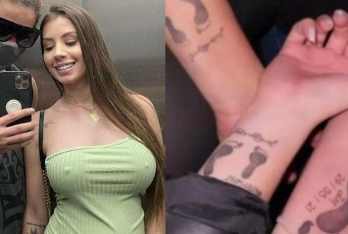 Por meio de foto publicada nos stories do Instagram, a estudante de Engenharia Civil compartilhou uma foto em que Cassia Deggan e Ana Giulia mostram o desenho do pézinho de João, tatuado em seus pulsos.