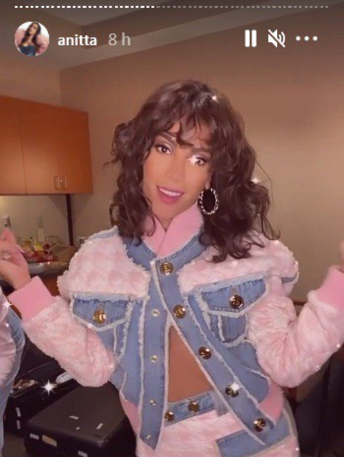 Anitta com o look que escolheu para se apresentar com LunayReprodução Internet