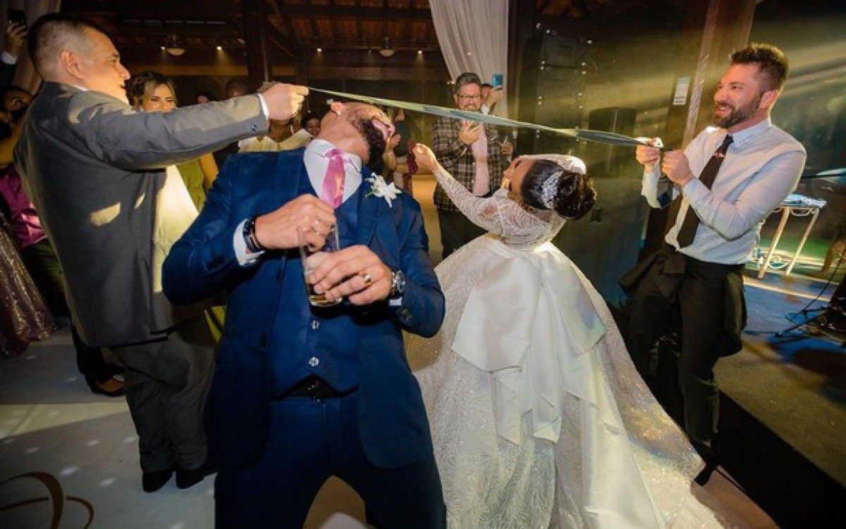 Rio - Viviane Araújo, de 46 anos, voltou a postar fotos inéditas de seu casamento com Guilherme Militão, de 32, no Instagram, na noite desta sexta-feira. Nas imagens, o casal aparece dançando durante a festa. "Se não for pra “sextar” assim nem chama a gente , né amor?!", brincou a rainha de bateria do Salgueiro na legenda da foto.