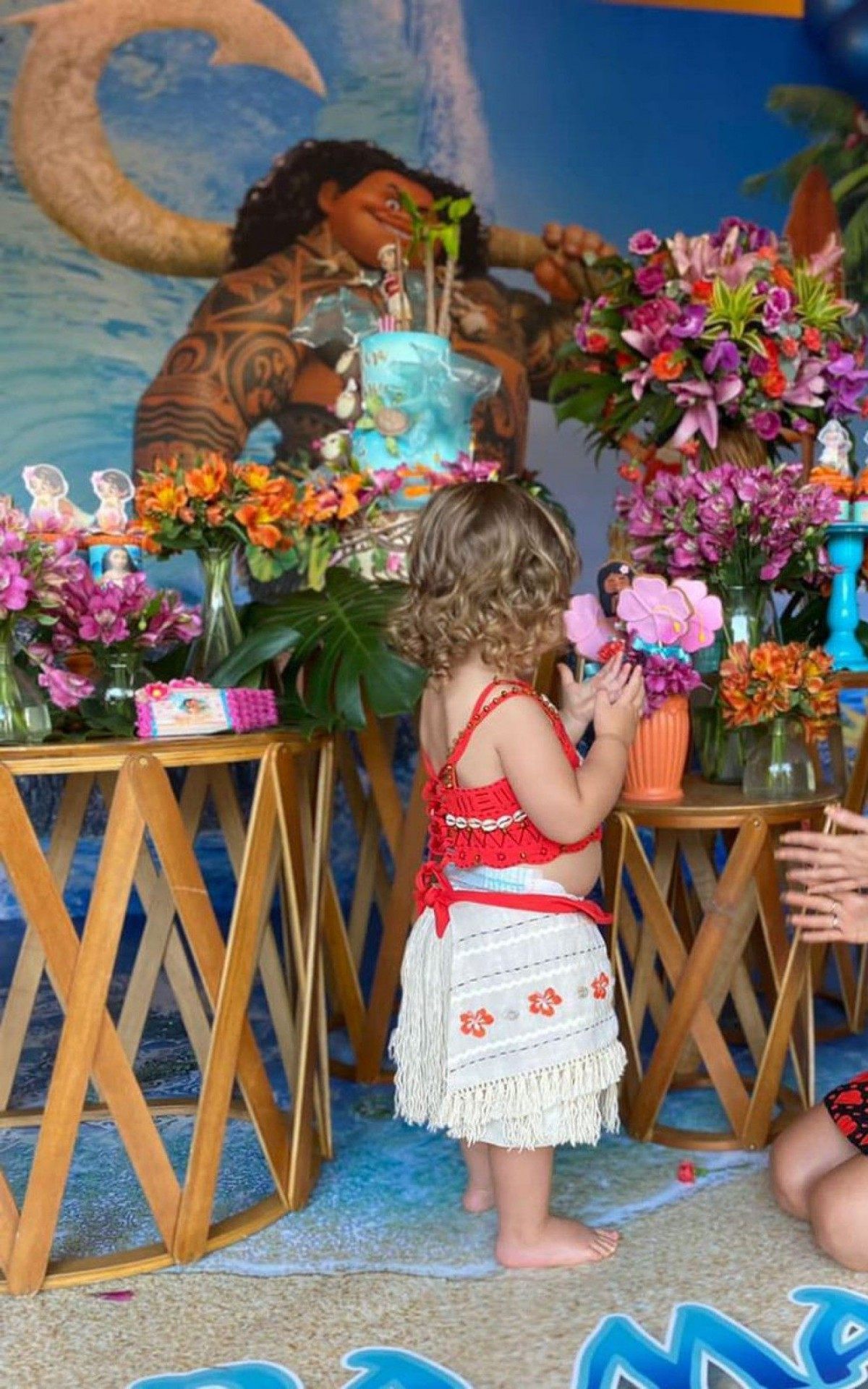 No Instagram, Tata compartilhou um registro do momento especial com a herdeira. "Feliz 2 anos grande amor da minha vida. Eu quero ser melhor pra vc. Mais saudável, mais coerente, mais madura, mais sabia, mais amiga. Eu só quero te fazer feliz. Tudo que precisar farei. Resumindo: Sou sua estagiária. Te amo! Obrigada @lorenaduquefestas por esse painel lindo. E obrigada @le_infance pela linda fantasia de moana. O laço eu peguei pra mim quando ela tava distraída", escreveu na legenda.