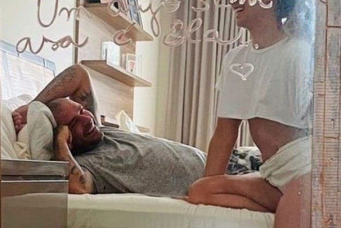 Rio - Paolla Oliveira compartilhou fotos românticas com Diogo Nogueira, na noite desta quinta-feira, pelo Instagram. Em uma delas, o casal apaixonado aparece em uma cama com a imagem refletida em um espelho que tem um trecho da música "Flor de Caña" escrito com batom. "Um raio de sol invadiu minha casa, um anjo sem asa é ela", diz o trecho.