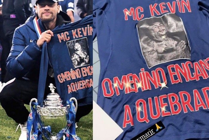 "Mais um sonho realizado. Obrigado, Neymar Junior", agradeceu a mãe do artista em stories postados nas redes sociais. Na camisa, embaixo da estampa com a foto de MC Kevin, aparece a frase: 'O menino encantou a quebrada'.