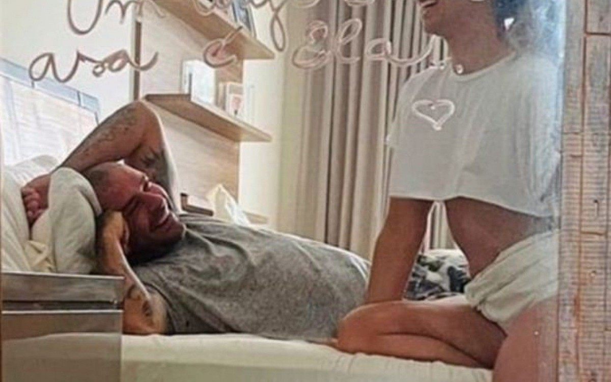 Rio - Paolla Oliveira compartilhou fotos românticas com Diogo Nogueira, na noite desta quinta-feira, pelo Instagram. Em uma delas, o casal apaixonado aparece em uma cama com a imagem refletida em um espelho que tem um trecho da música "Flor de Caña" escrito com batom. "Um raio de sol invadiu minha casa, um anjo sem asa é ela", diz o trecho.