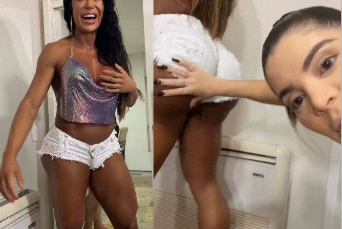 "Deixa eu bater na sua bunda de novo, Gracyanne. Eu ficava só pegando na bunda dela. É muito bom pegar na bunda da Gracyanne. Eu ficou pegando na bunda dela direto", disse Gkay em vídeo postado nos stories do Instragram.