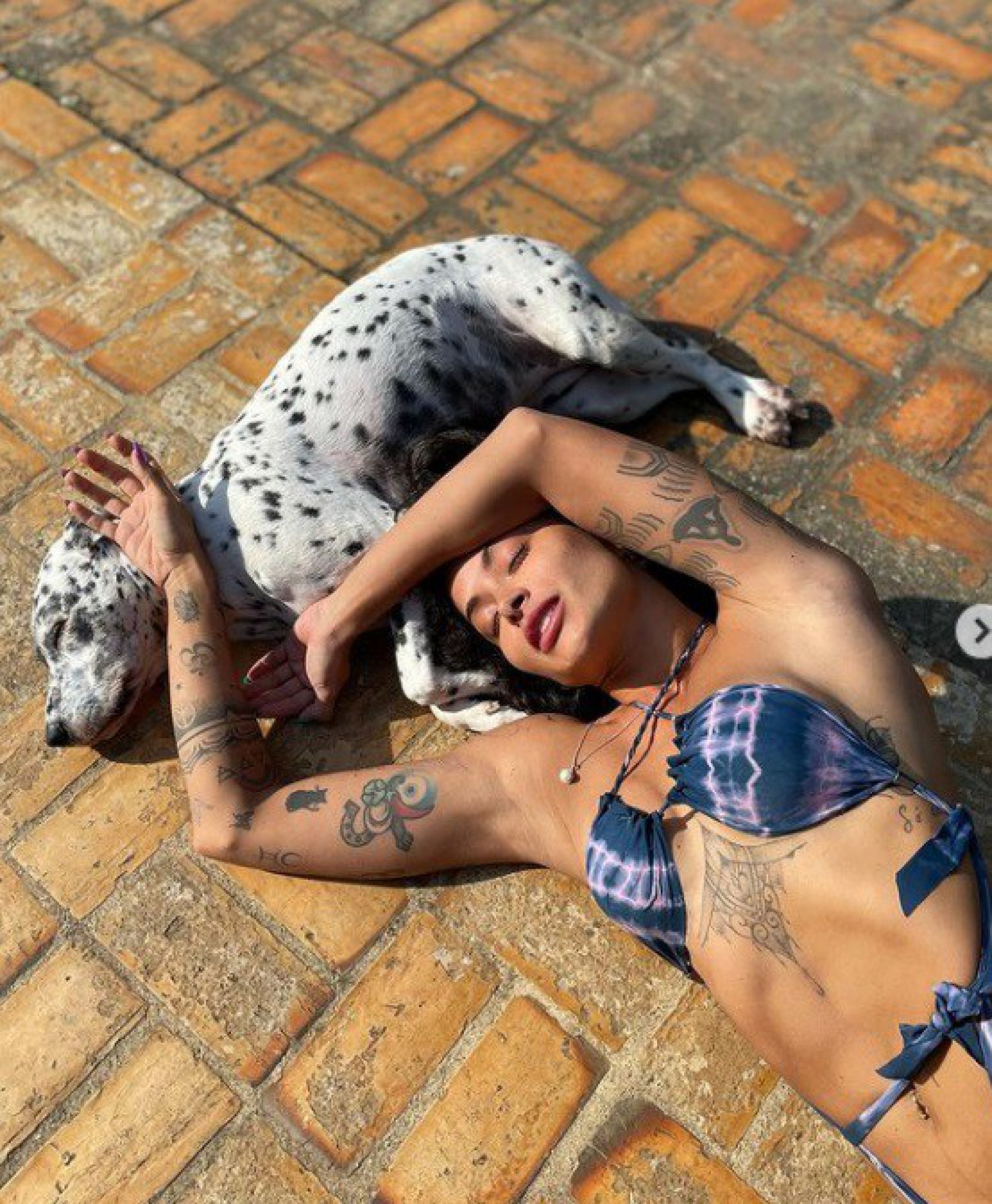 Rio - Aline Campos, ex Riscado, encantou os internautas ao publicar uma série de imagens fofas com um cachorro no Instagram, nesta segunda-feira. De biquíni cavado, a atriz e apresentadora, que estava deitada no chão, também esbanjou boa forma.