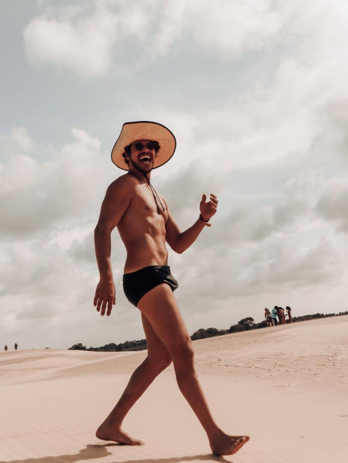 Rio - O ator José Loreto, de 37 anos, subiu a temperatura da web ao publicar fotos de sunga nesta sexta-feira. De férias no Piauí, o ator surgiu usando apenas um modelo preto e chapéu na cabeça, deixando o físico sarado em evidência.