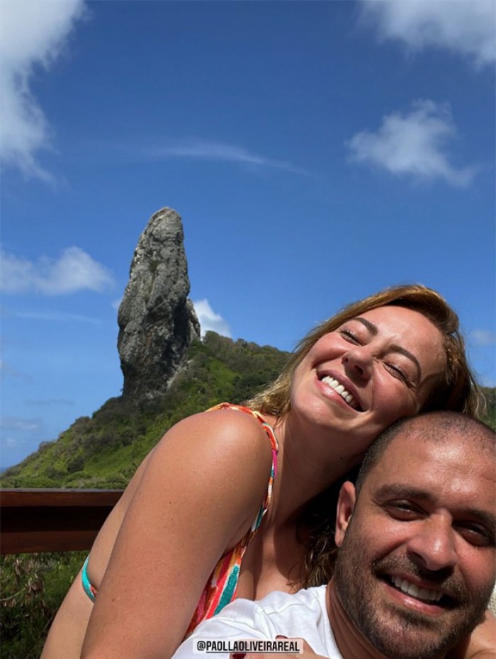 Diogo Nogueira posa agarradinho com Paolla Oliveira em Fernando de Noronha