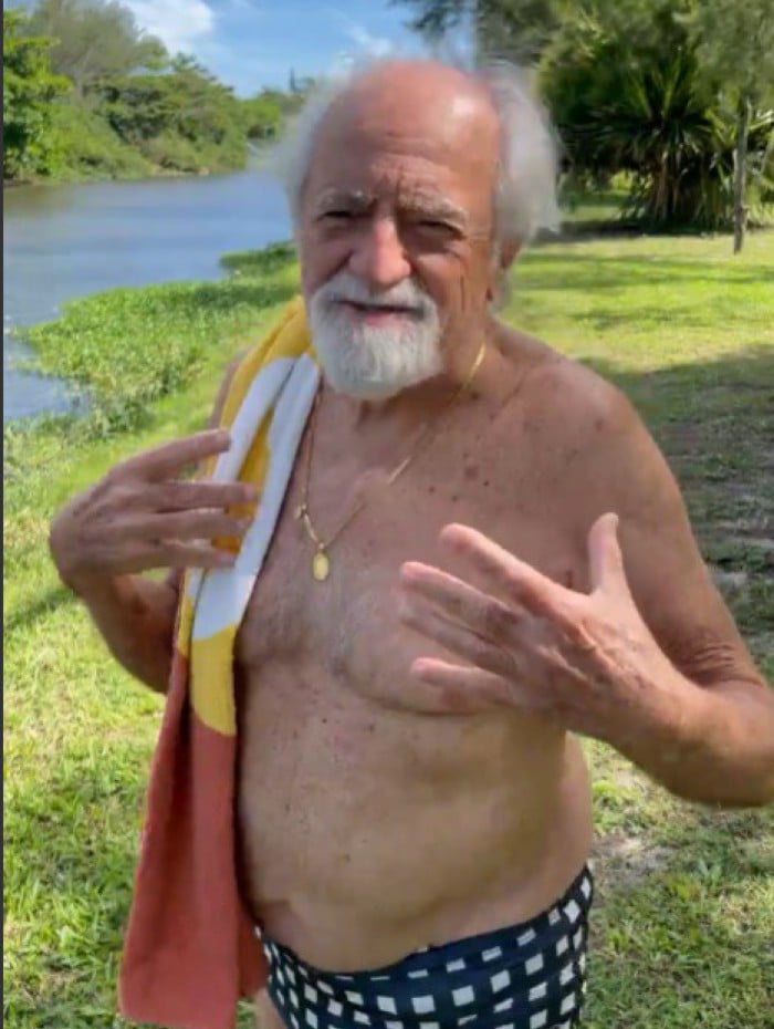 Rio - Sucesso nas redes sociais, o ator Ary Fontoura, de 88 anos, divertiu os milhares de seguidores, nesta segunda-feira, ao aparecer somente de sunga. Na publicação, o veterano mostrou que mantem a alegria e o físico em dia.