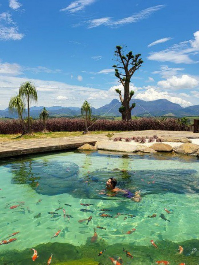 Rio - Bruno Gagliasso impressionou os internautas ao publicar no Instagram, nesta terça-feira, fotos do lago piscina de seu rancho em Membeca, no interior do Rio de Janeiro. O local, inclusive, já está cheio de peixinhos. "Como explico o amor que tô sentindo pelos meus peixes? Eu chamo e eles vem... Olha isso!!", escreveu o artista na legenda da publicação.