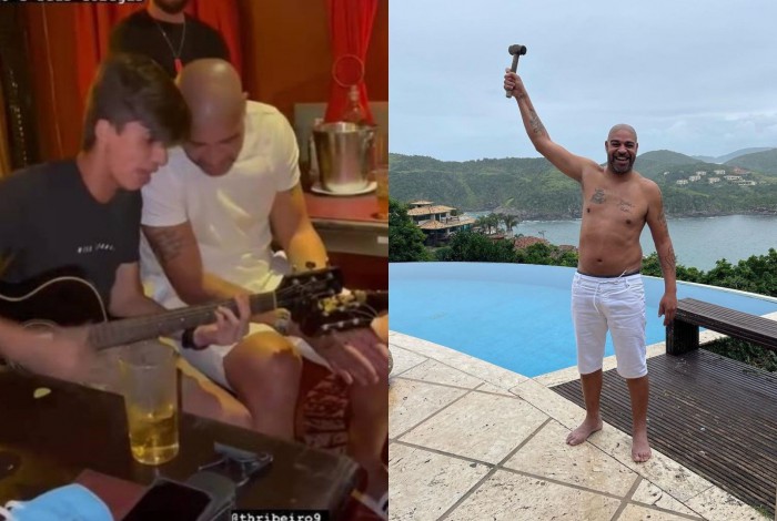 Rio - Adriano Imperador, de 39 anos, curte férias em Búzios e deu uma canjinha em um bar da cidade, que é localizada na Região dos Lagos. O ex-jogador compartilhou um vídeo por meio do Instagram Stories, no qual aparece cantando “Olha Só Você”, do grupo de pagode Raça Negra.