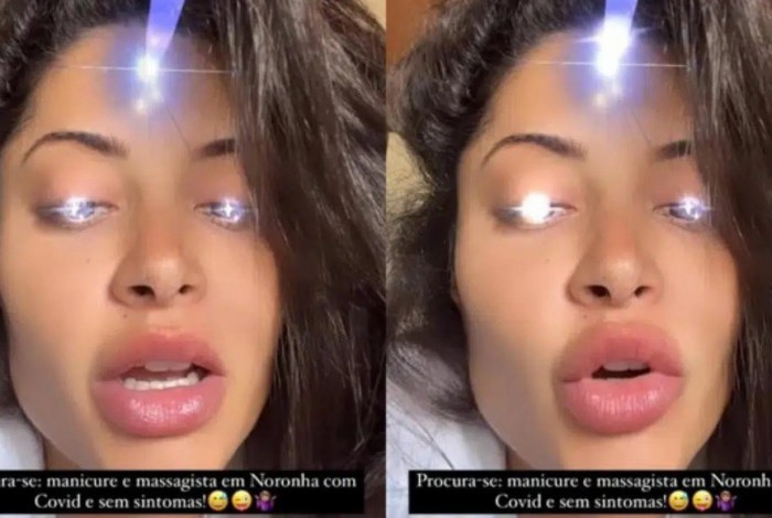 "Procura-se: manicure e massagista em Noronha com Covid e sem sintomas!", escreveu Aline na legenda. A modelo está isolada em Fernando de Noronha, onde passava férias com os filhos, que também testaram positivo para a doença.