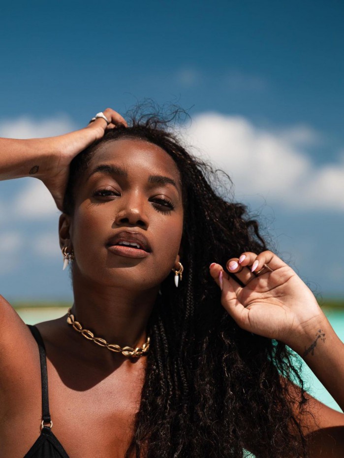 Musa! IZA posa de biquíni em cenário paradisíaco