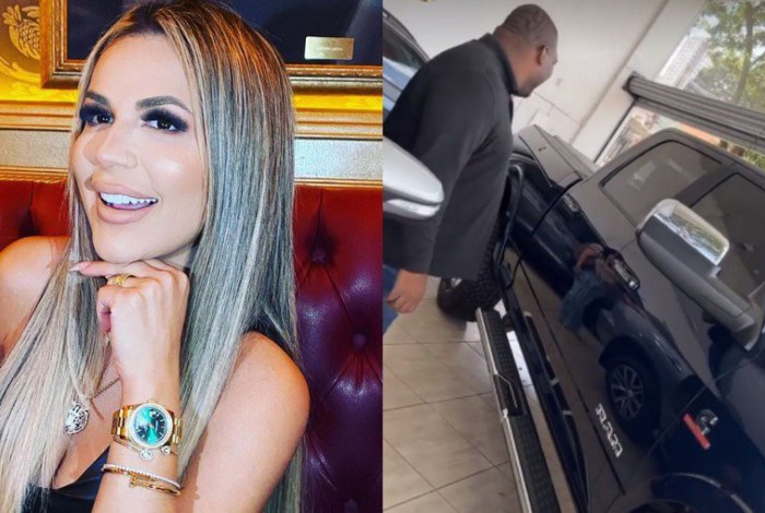 "A nave nova da mãe. Olha o tamanho desse carro", disse Deolane filmando o veículo. A viúva de MC Kevin comprou uma picape Ram 2500 zero. O modelo da doutora, como é conhecida pelos fãs, é na cor azul com o interior bege.