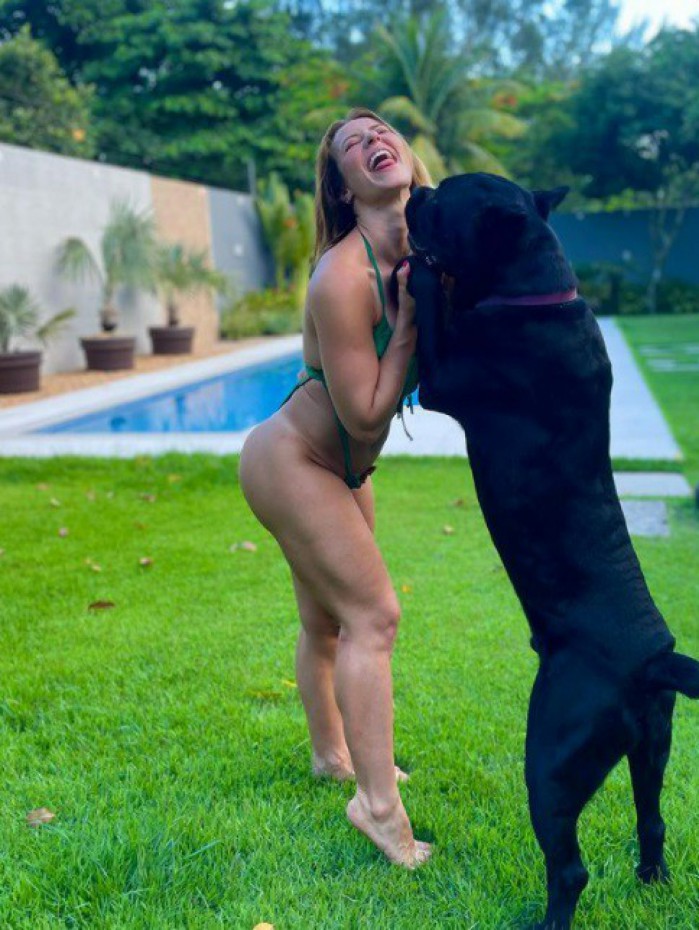 Rio - Paolla Oliveira, de 39 anos, encantou os internautas ao publicar um clique pra lá de fofo com seu cachorro no Instagram, nesta terça-feira. De biquíni cavado, a atriz dançou com seu bichinho de estimação no gramado de sua casa. As curvas perfeitas da namorada de Diogo Nogueira chamaram a atenção. "Meu parceirão na dança", escreveu ela na legenda.