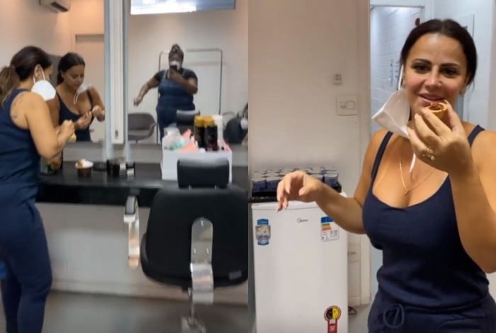 'Flagra'! Cacau Protásio mostra Viviane Araújo comendo docinho em camarim