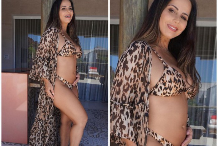 De biquíni, Viviane Araújo exibe barriguinha de gravidez: 'Pacotinho de amor'