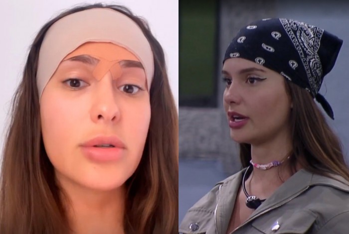 "Estou sumida por motivos de: tirei dois centímetros da minha testa! Sim, corajosa ela, mas deu tudo certo, graças a Deus. Era uma coisa que me incomodava muito", confessou a ex-sister, que chegou a ser uma das representantes da febre dos lenços na cabeça que dominou o "BBB 21", além de estar sempre com sua franjinha morena.