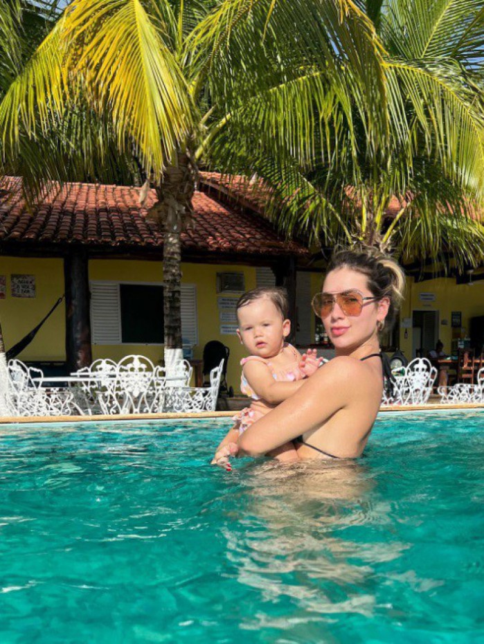 Rio - Virginia Fonseca aproveitou a sexta-feira (18) curtindo um banho de piscina acompanhada da filha, Maria Alice, de 9 meses. Recentemente, a influenciadora anunciou que espera o segundo filho do casamento com Zé Felipe.