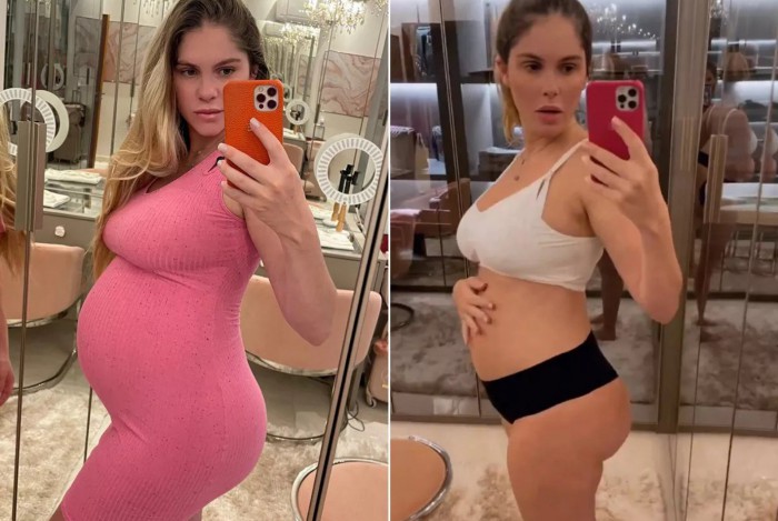 "Vocês estão pedindo para ver a minha barriguinha. Nove dias pós-parto está assim. Está bom, né? Estou usando cinta, mas só durante o dia. Para dormir, eu tiro", iniciou. "Estou bastante inchada. Mas a barriguinha está desinchando. Quadril também está bem grande, ainda. O umbigo fica meio caidinho, mas estamos recuperando", contou sobre a recuperação da cesariana.