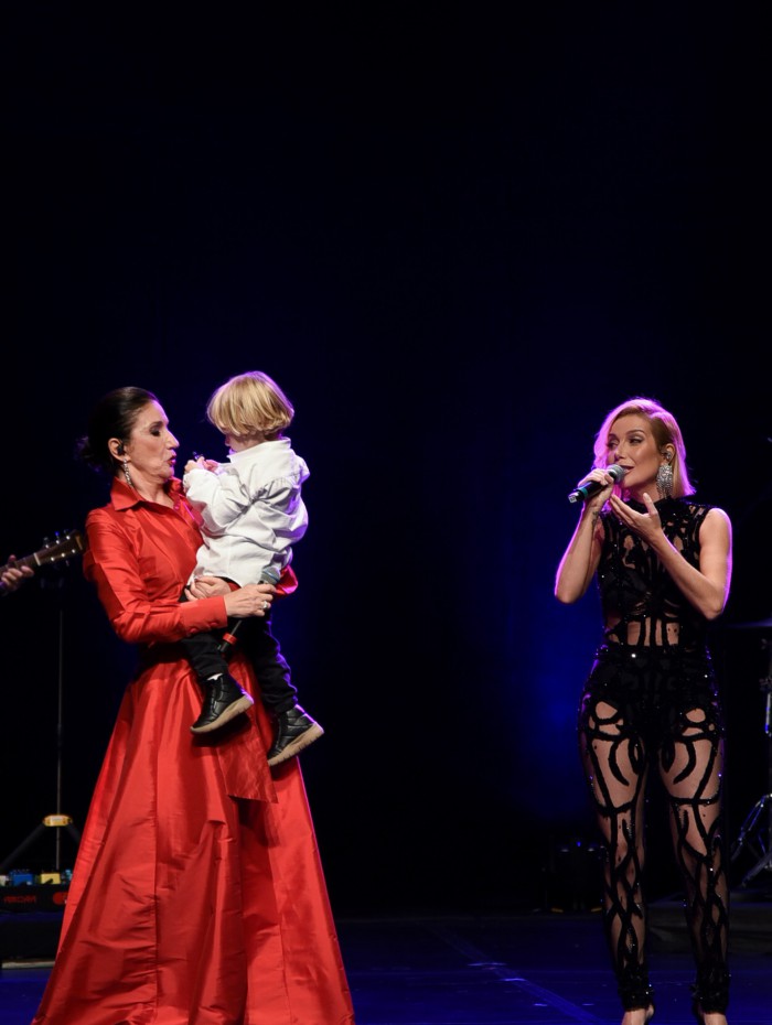 Durante o espetáculo, o pequeno, de apenas 2 anos de idade, foi guiado pela mãe até o centro, onde correu para o colo da avó, que caiu na gargalhada com a atitude do garotinho. Após o término da apresentação, Luiza tirou fotos com Lucca e o filho mais novo, Matteo, de 5 meses de vida. Os dois filhos da cantora são frutos do casamento com o diretor de TV Cris Gomes.