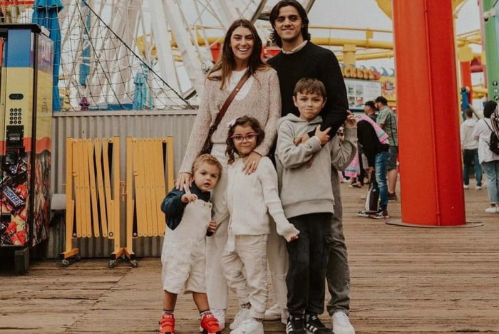 Rio - Felipe Simas usou as redes sociais, nesta sexta-feira, para compartilhar um registro em que aparece ao lado da esposa, Mariana Uhlmann e dos três filhos, Joaquim, de 8 anos, Maria, de 5 e Vicente, de 2. No Instagram, o ator aproveitou para fazer uma reflexão acerca da família na legenda da imagem.