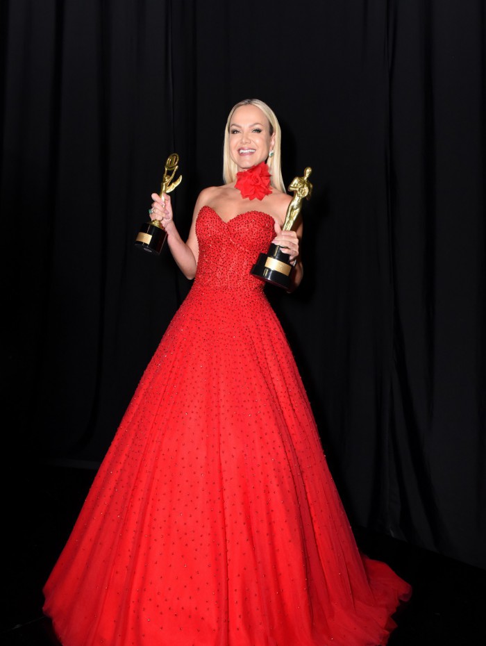 Rio - Eliana Michaelichen, que há 16 anos é a única mulher a comandar um programa dominical de auditório, conquistou dois prêmios durante o "Troféu Imprensa" de 2022. A apresentadora foi eleita a "Melhor Apresentadora" tanto pelo voto popular, quanto pelo do júri do programa, que vai ao ar na noite desta quarta-feira, às 21h30 no SBT.